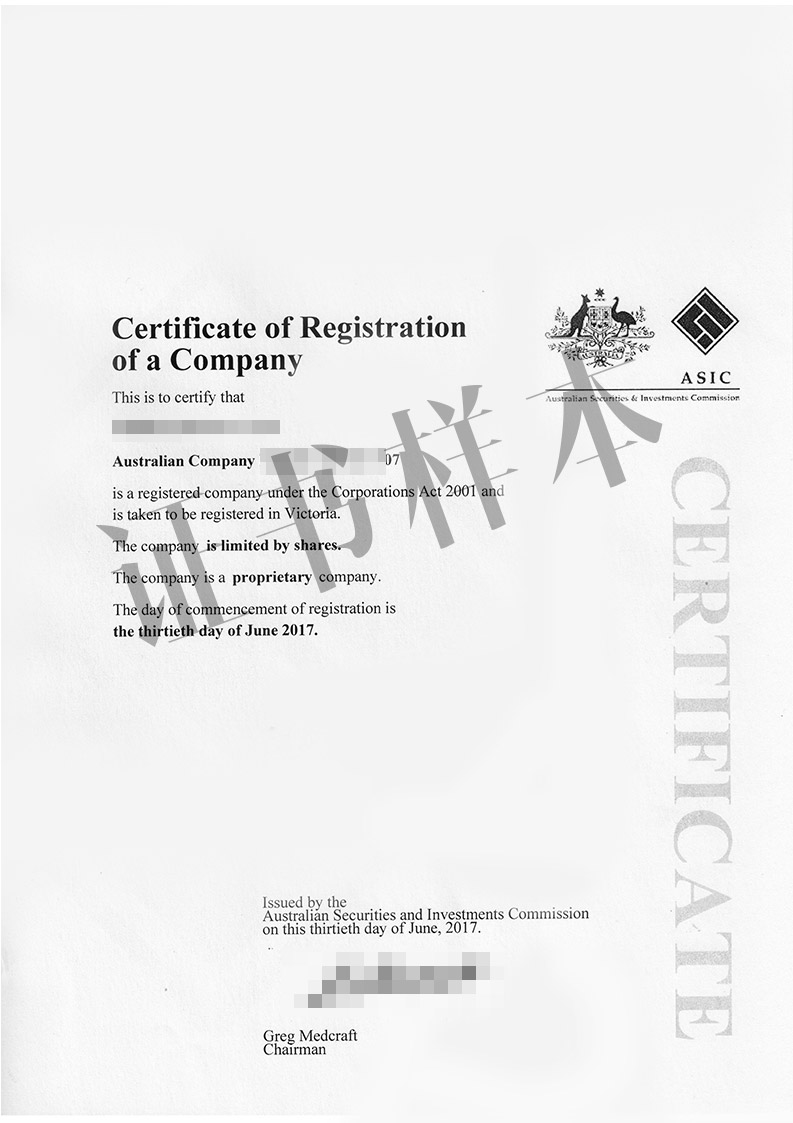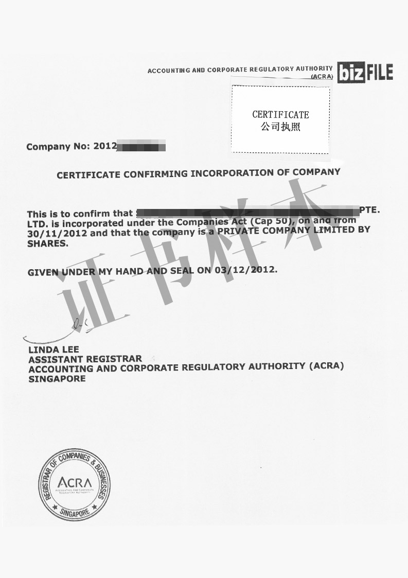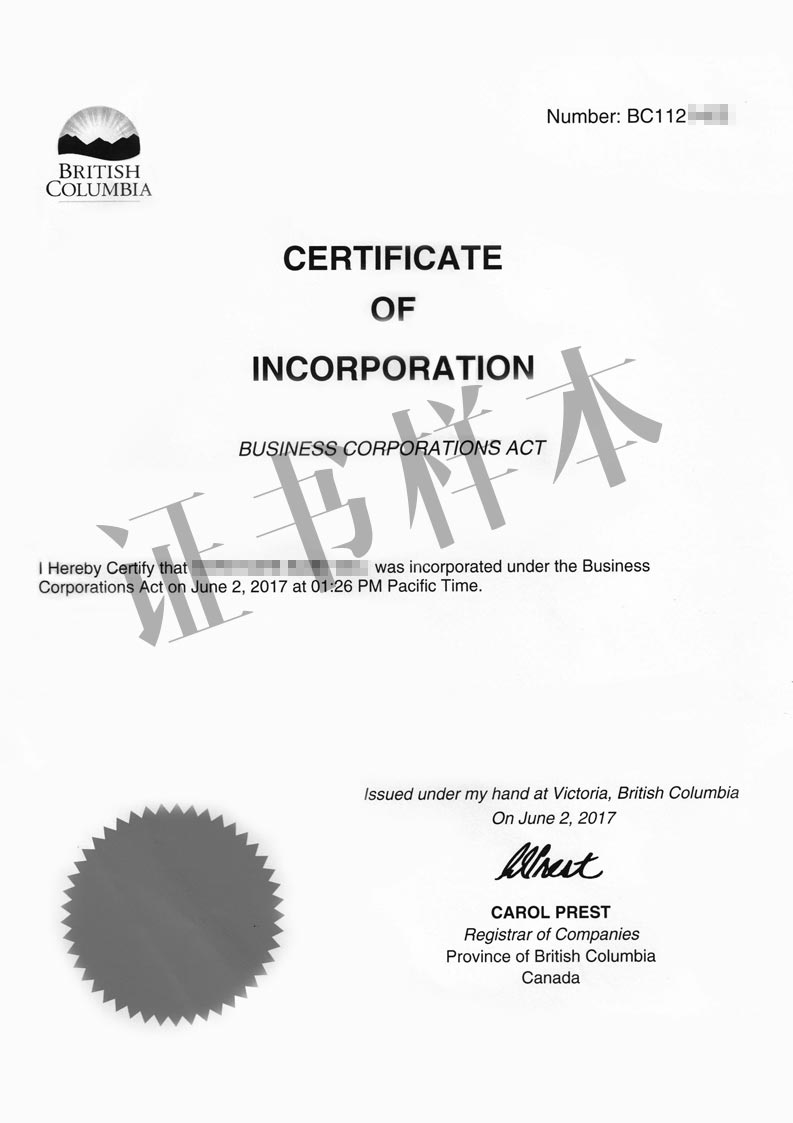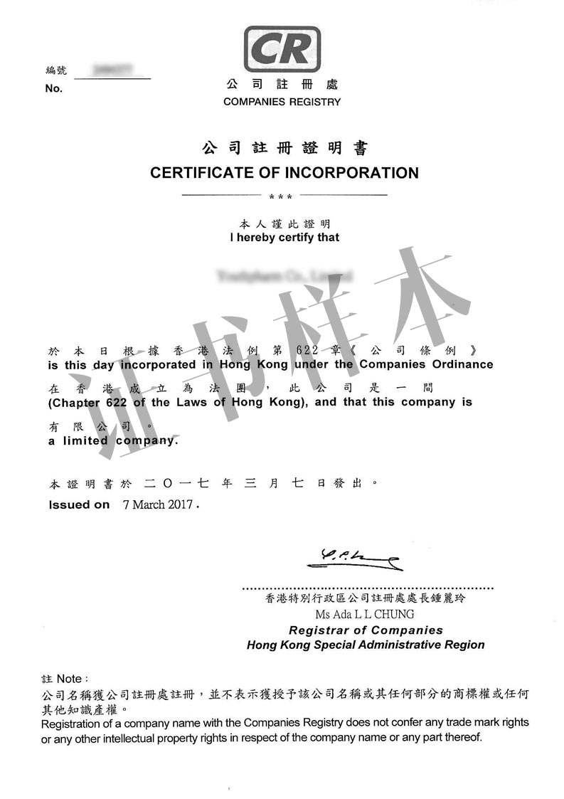 • 公司注册证明书