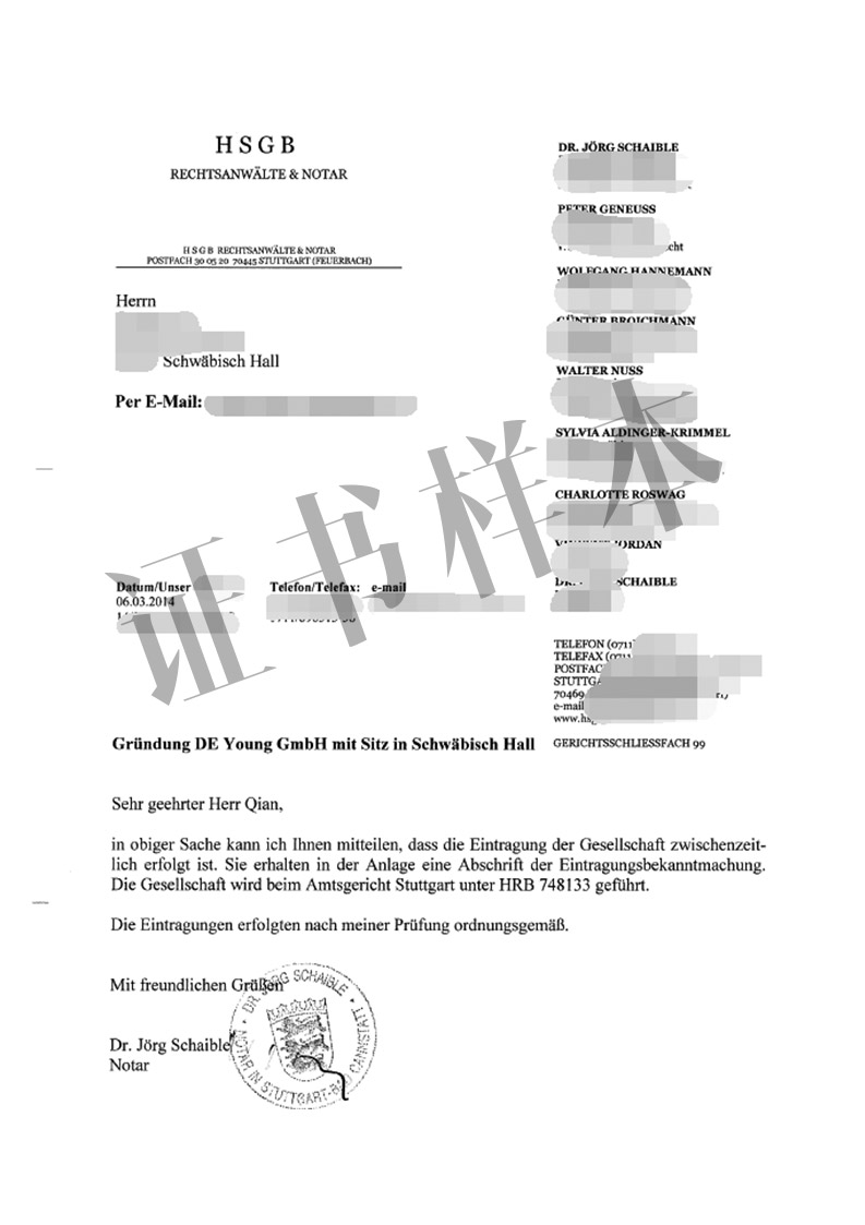 • 工商登记证(扫描件,德国采用电子登记,扫描件已具备法律效用)