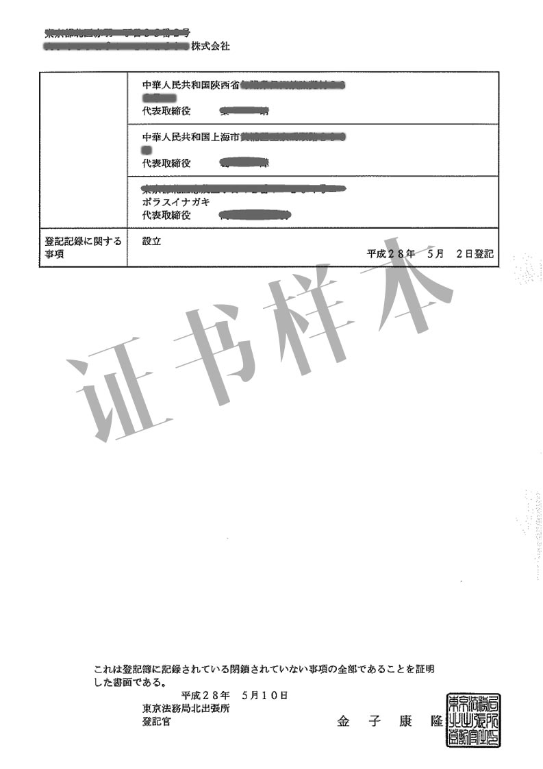 • 董事名单(我司可提供其中的日本长住人代表)