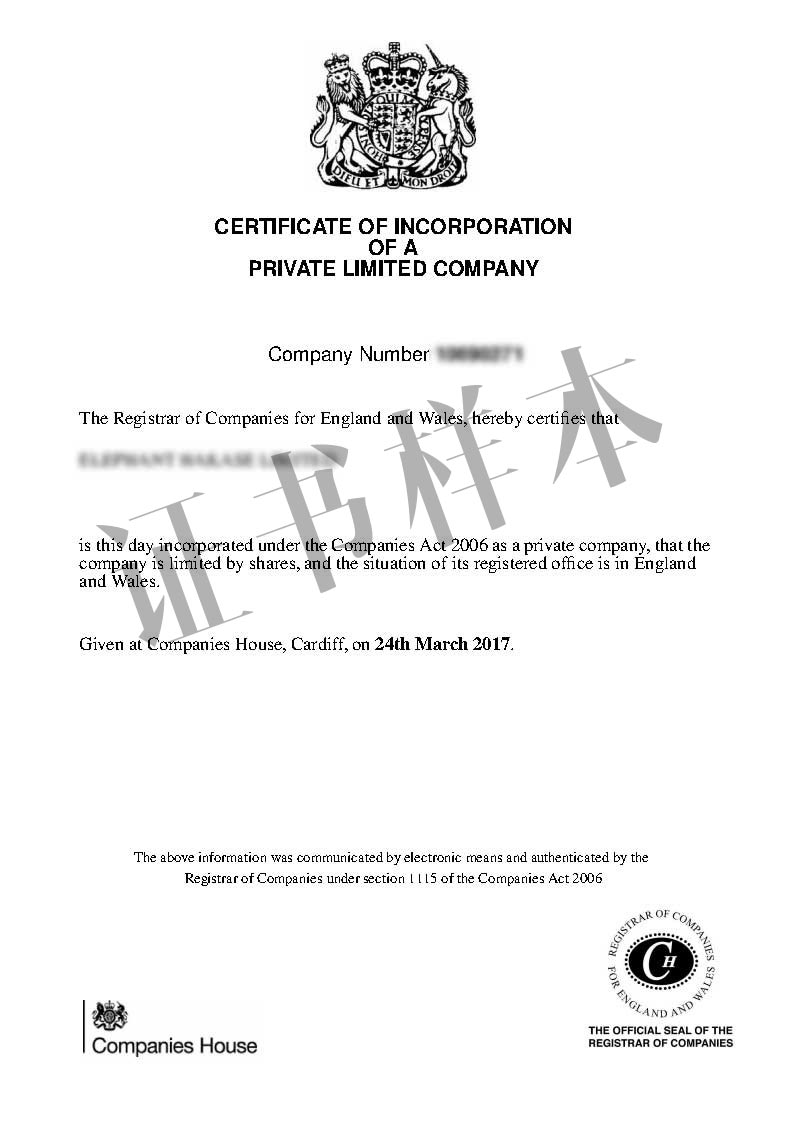 • 英国公司注册证书(CI)